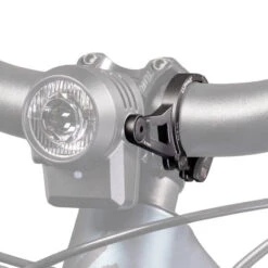 Abstand vom Befestigungsloch der Halterschraube zum Halterrand ca. 25 mm, Schellenbreite 9 mm. Die Halterung besteht aus CNC-gefrästem und anschließend schwarz eloxiertem Aluminium. Die Gummiauflage verhindert Kratzer und sorgt für festen Halt am Lenker.